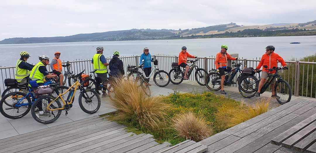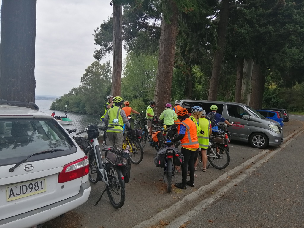 The car journey to cloudy Taupo from sunny Hawkes Bay took longer than usual due to numerous sections of roadworks. The group of 13 Ebike Social Riders Hawkes Bay riders had an extra a rider from Taupo. We met up at Five Mile Bay and cycled to Acacia Bay. Distance approx. 45/50kms.