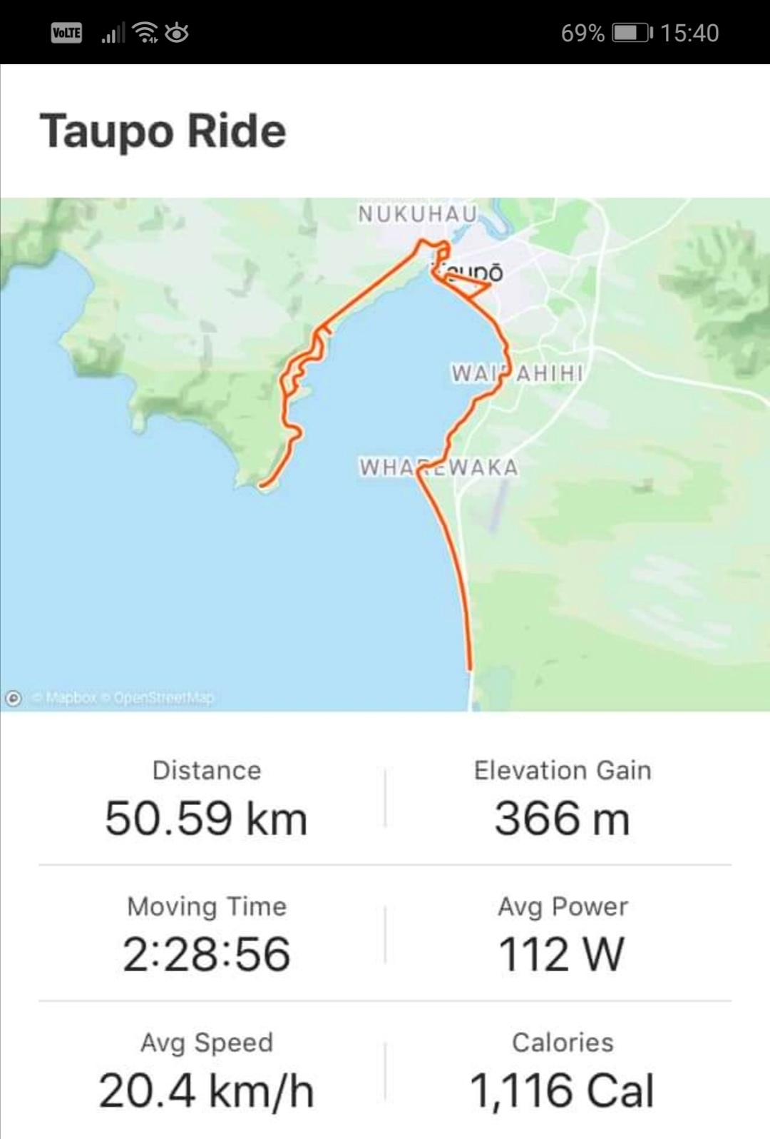 Route – 5 Mile Bay Car Park – Shared Pathway to Taupo – Tongariro St – Victoria Cafe – Tongaririo St – Ferry Rd – Redoubt St – Waiiraki Drive – Norman smith St – Acacia Bay Rd tpo the start of the private road. U turn return down Watchman Rd to Taupo – 5 Mile Bay .