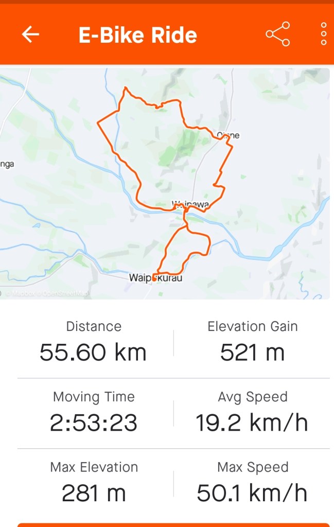 Ride back; Henderson St – left to Knorp St – Right to White Rd – White Rd Extension – Right to Racecourse Rd – Left to Homeward Rd – Right to Ireland Rd – Right to Taumumu Rd – Left to Johnson St – Right to Bibby St – Victoria St – Cross SH2 to Islington Drive.