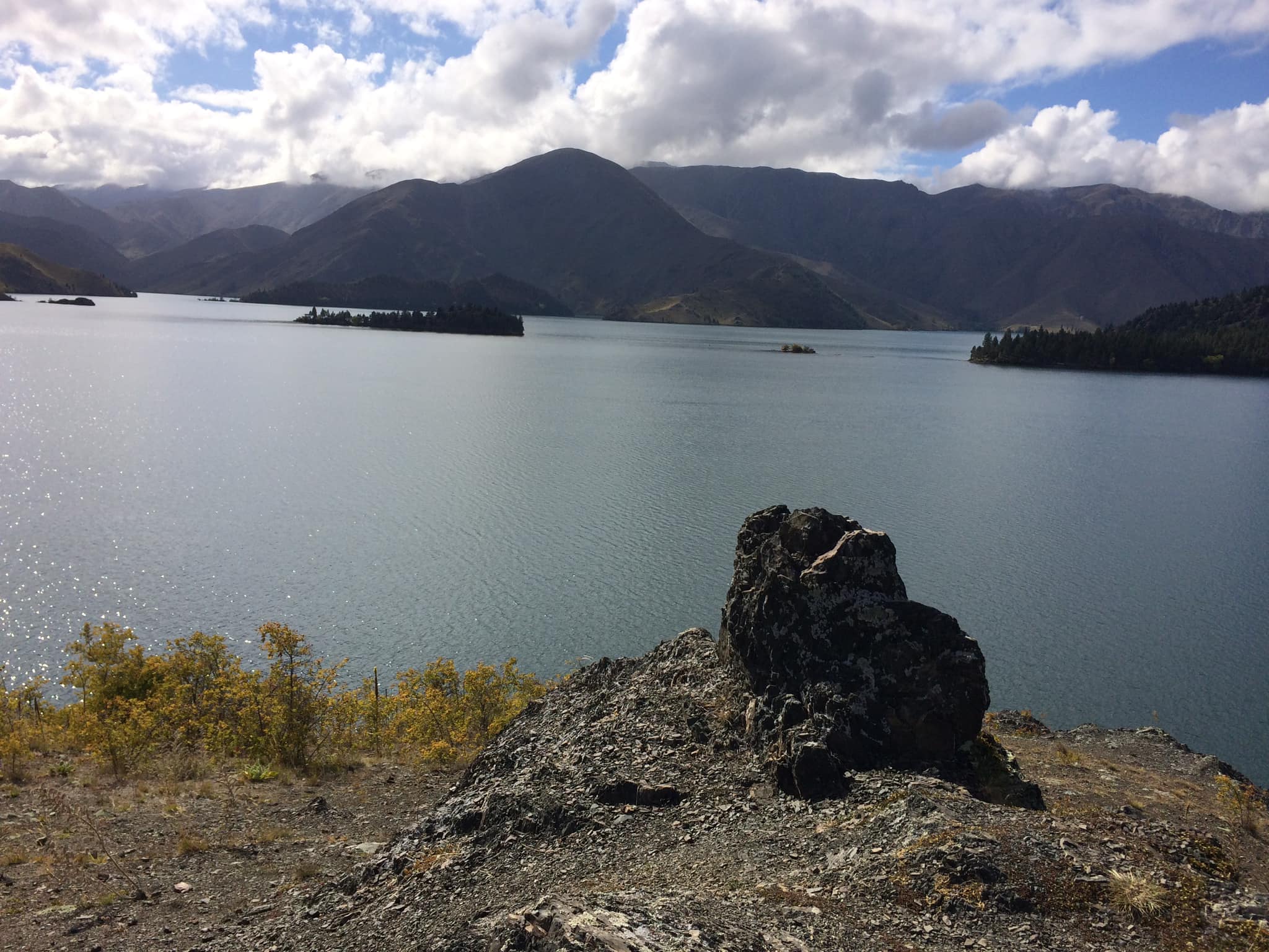 “Today we rode a small section of the Alps to Ocean. Twists, turns, steep up and down, steep drop offs, spectacular scenery. Sailors Crossing to Benmore Dam.” – Robyn