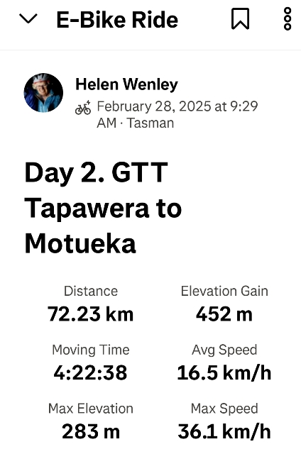 And before we knew it, we were back where we’d started. We’d experienced perfect weather, excellent companionship, very comfortable accommodation and great food. The trail was in good condition, with diverse scenery, and with just a good amount of challenge. The hire ebikes were adequate. I’d do it again in a heartbeat!