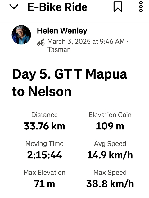 Day 4. Kaiteriteri to Mapua. 42.73kms.